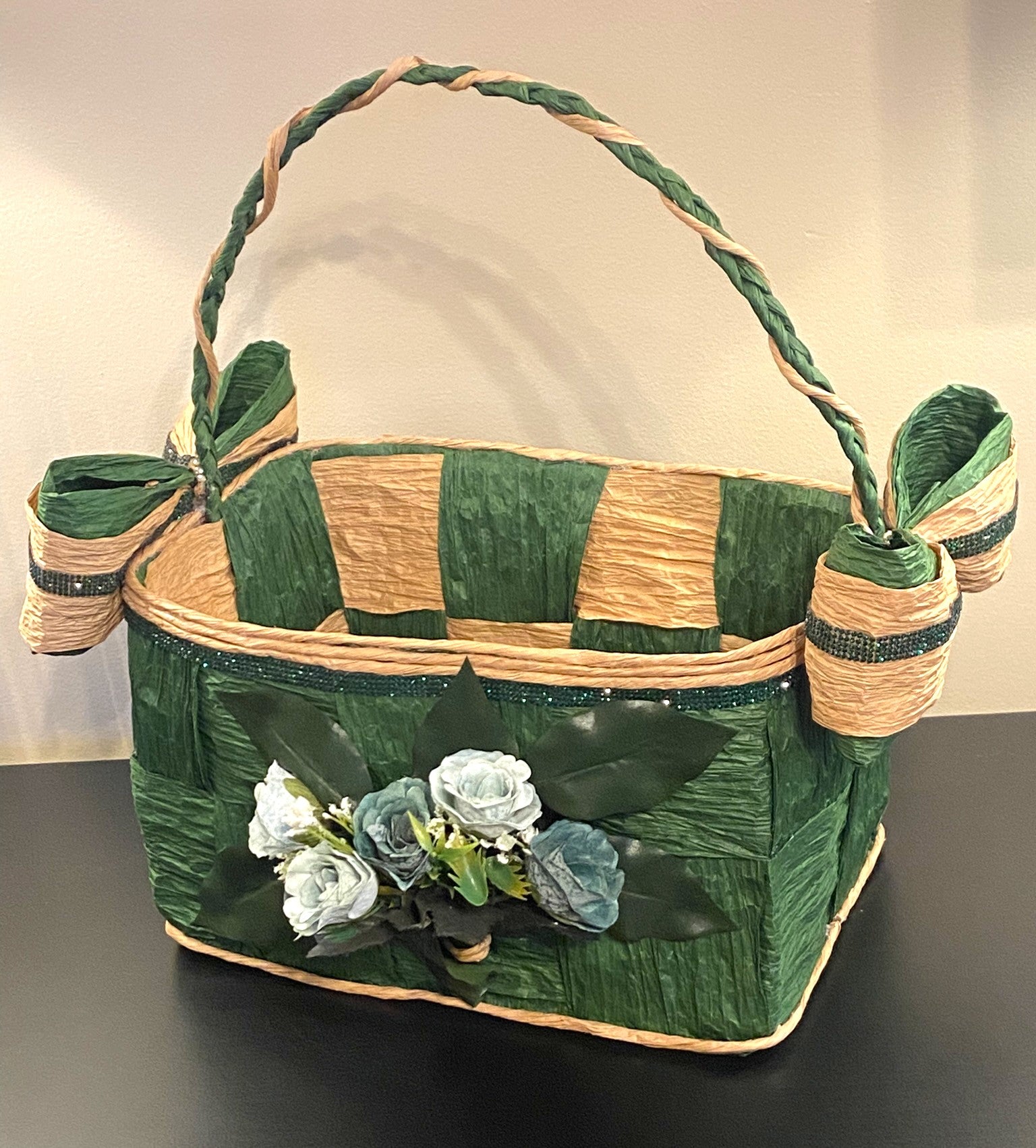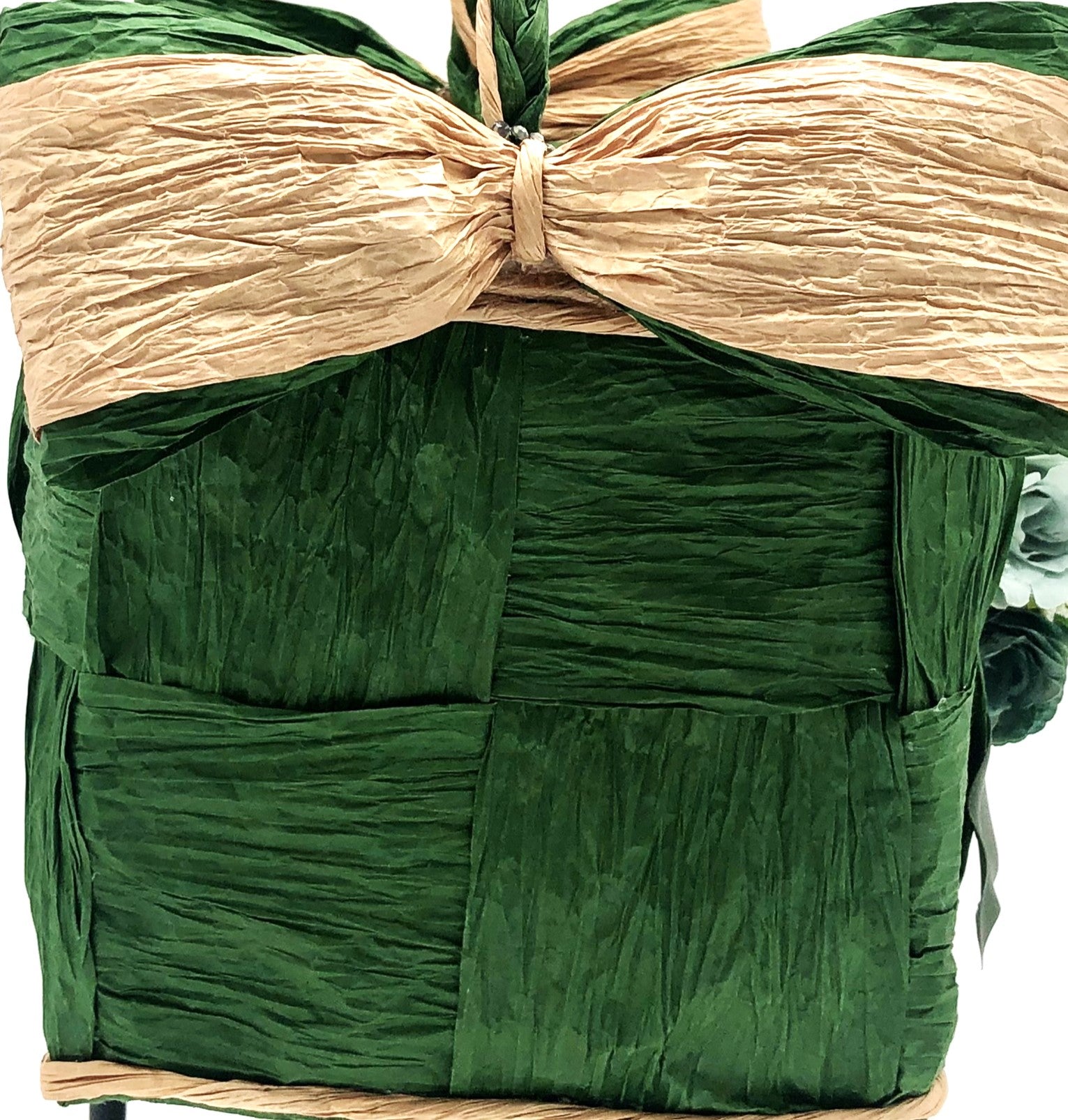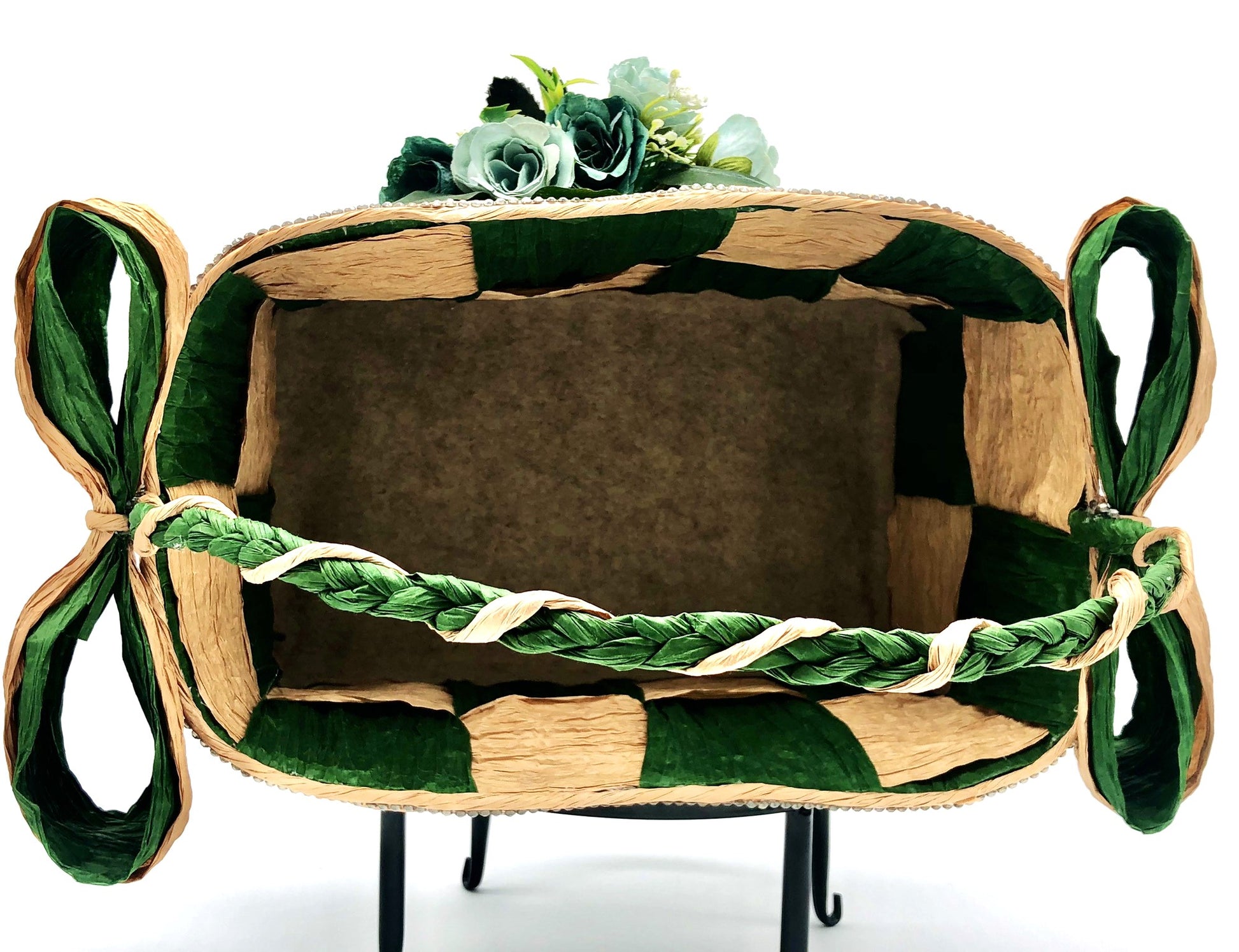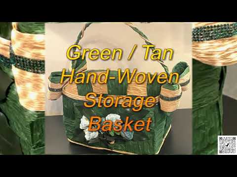 Green Hand-Woven Storage Basket - Eco-friendly (made with twisted raffia paper)